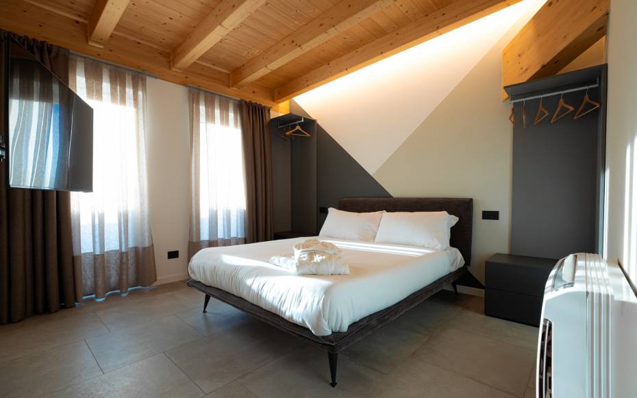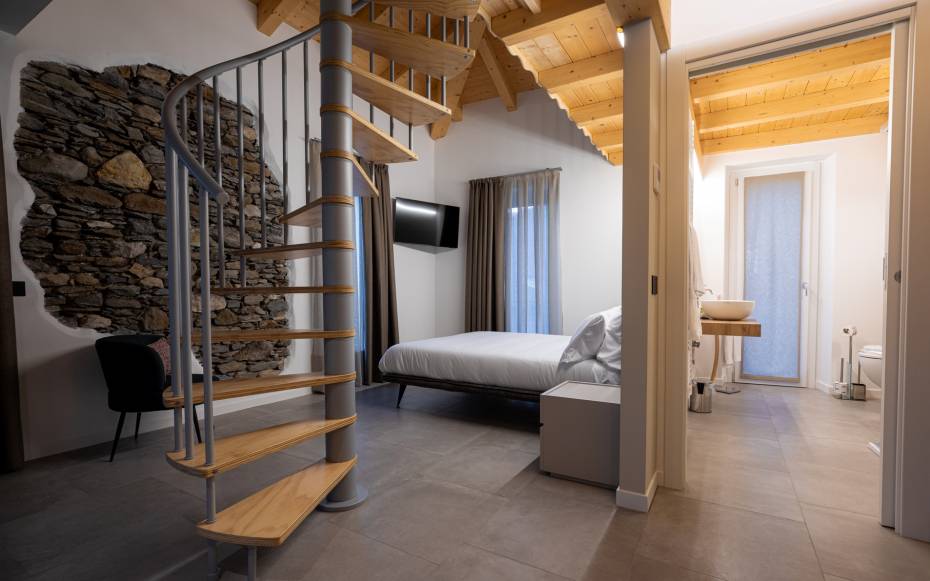 Moderne e dotate di ogni comfort, le suite offrono tante attenzioni dedicate agli ospiti: dal frigobar gratuito alla macchina del caffè al bollitore per tisane e una carta dei vini per ordinare e degustare in camera un’elegante bottiglia di Nebbiolo della Valtellina. L’anima tecnologica della struttura si respira nell’ambiente interno, riscaldato e raffrescato grazie a una moderna pompa di calore che abbassa i consumi e riduce l'impatto ambientale. L’accesso alla camera è semplice e veloce attraverso il proprio smartphone e chiave digitale. Completano l’offerta delle camere, tutte servite da ascensore, cassaforte, tv da 43”, accappatoi e set di asciugamani, kit di cortesia, Wi-Fi gratuito e lo studio di Massoterapia MCB di Martina Salamida presente in struttura (per prenotare un massaggio: martyna.salamida@gmail.com, tel. +39 3488097594).