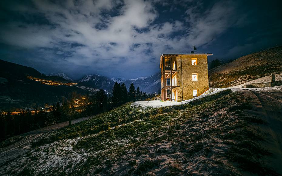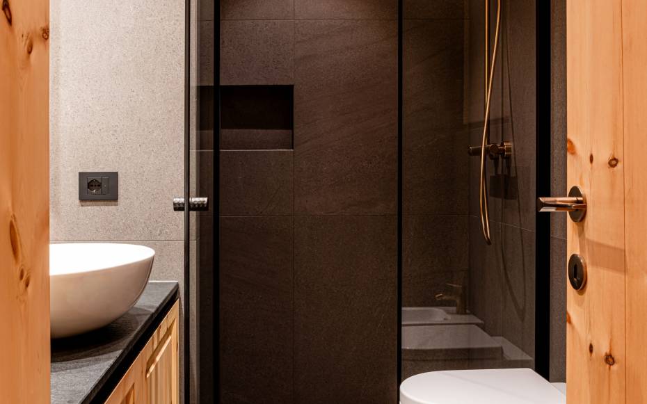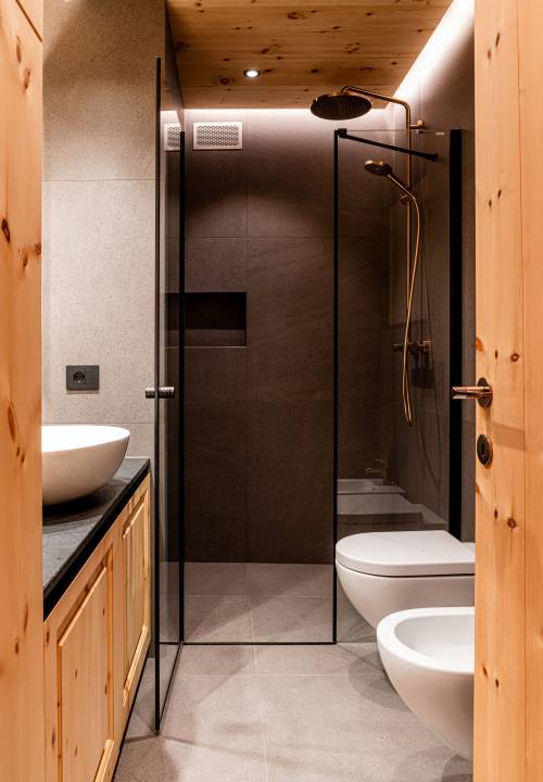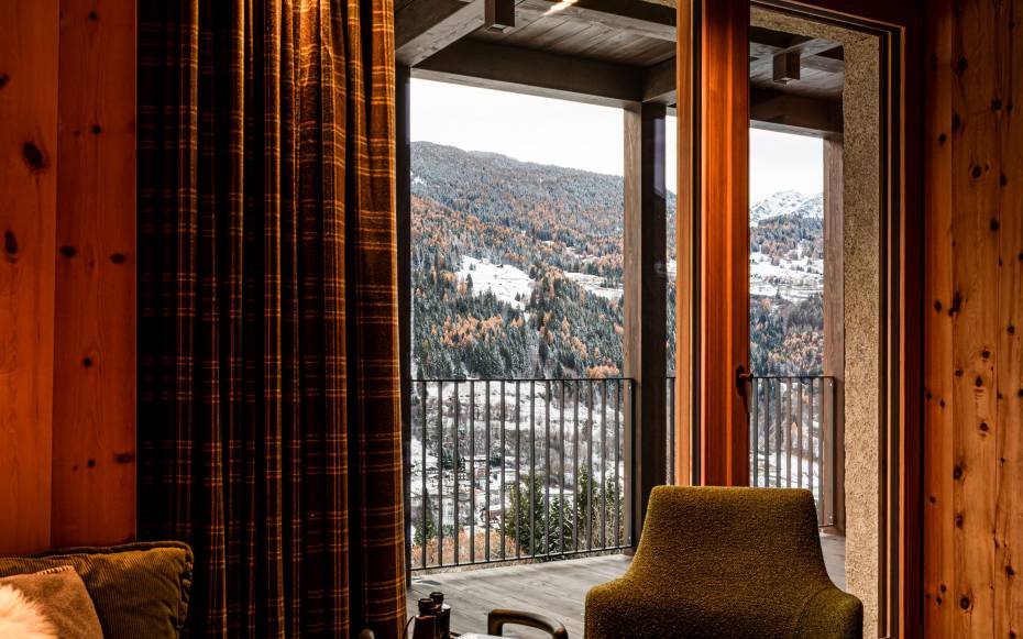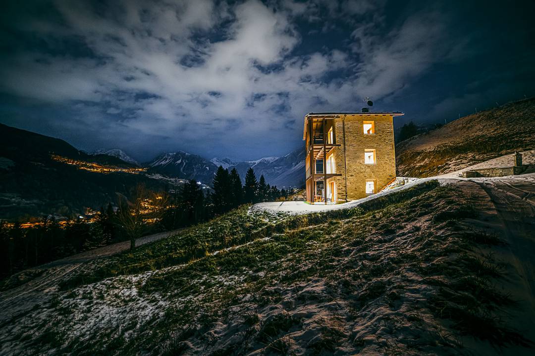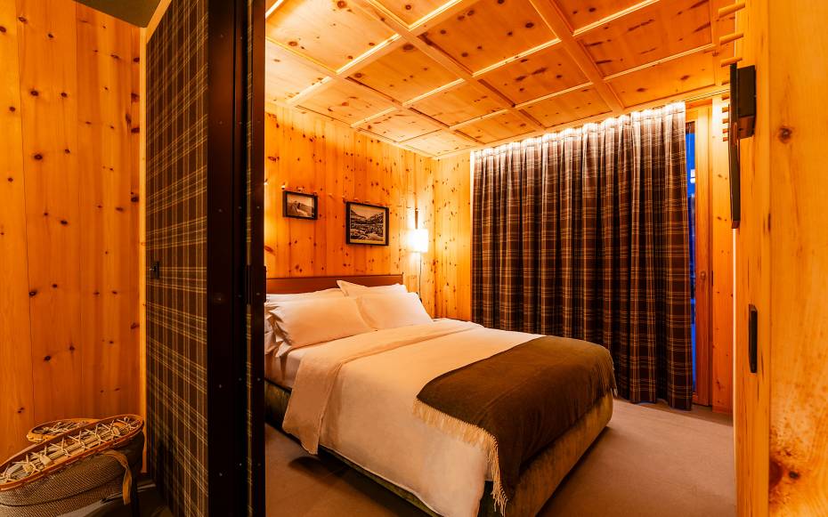 Nel fabbricato dell’Ottocento completamente rinnovato nel 2022, la storicità è stata preservata valorizzando i materiali locali, come il legno di larice del monte Reit di Bormio che riveste le pareti interne, e le fonti energetiche naturali con l’utilizzo di fotovoltaico, ricambio controllato dell’aria interna e biomassa. Il mood degli interni è ispirato alla semplicità delle case di montagna con contaminazioni di design, arredi Flexform e pezzi dei più prestigiosi designer contemporanei come Antonio Citterio e Gio Ponti.
